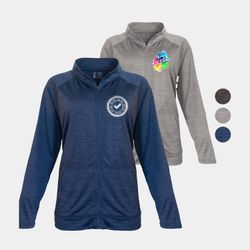Engineered for comfort and performance, the Imperial Space Dye Women's Full Zip Jacket features ultra-soft, stretch-enhanced fabric with a stylish space dye finish. Built with moisture-wicking and anti-microbial technology, it keeps you fresh and dry throughout the day. The raglan sleeves offer superior mobility, while the cuffed sleeves with thumbholes add a touch of functionality. With UPF 50+ protection and sizes up to 4XL in select colors, this mock-neck jacket is perfect for activewear or casual layering.