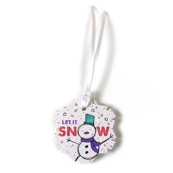 Your holiday wishes are printed on fully-plantable seed paper for a thoughtful and elegant holiday ornament. Choose from our ornament seed paper shape options. Your full-color, custom message is printed directly on Premium seed paper with Earth-friendly inks that wont damage the seeds. Our seed paper is made by hand from 100%-recycled material and embedded with a hardy mixture of wildflower seeds. Just plant, water, and enjoy your wildflowers! Includes ribbon or hemp tie for hanging. Choose from our pre-designed Holiday artwork. Choose a letter after the -HEW- to reference the design you love. Send us your camera-ready logo and well do the rest. Or fully customize the item for no additional charge. Imprint area varies by shape. Templates available by request.