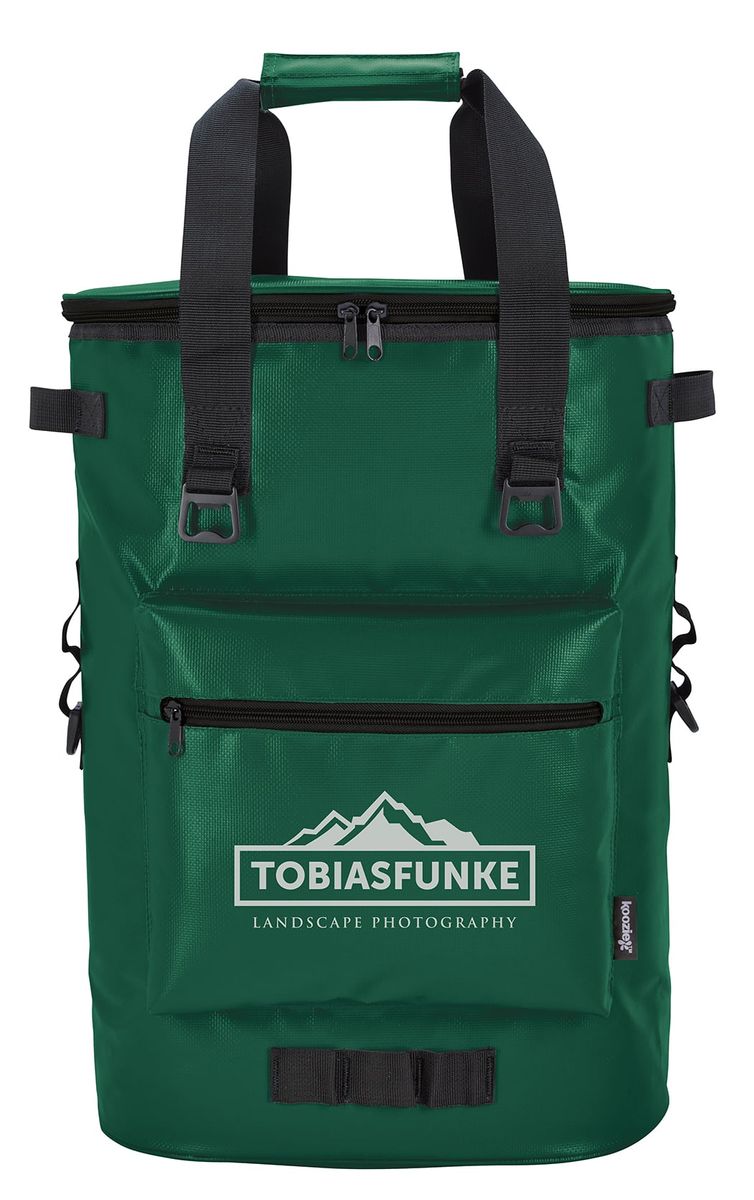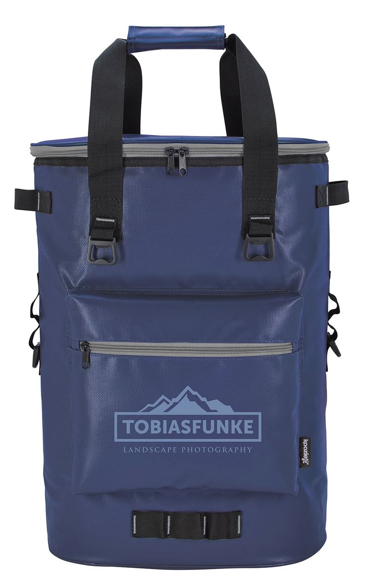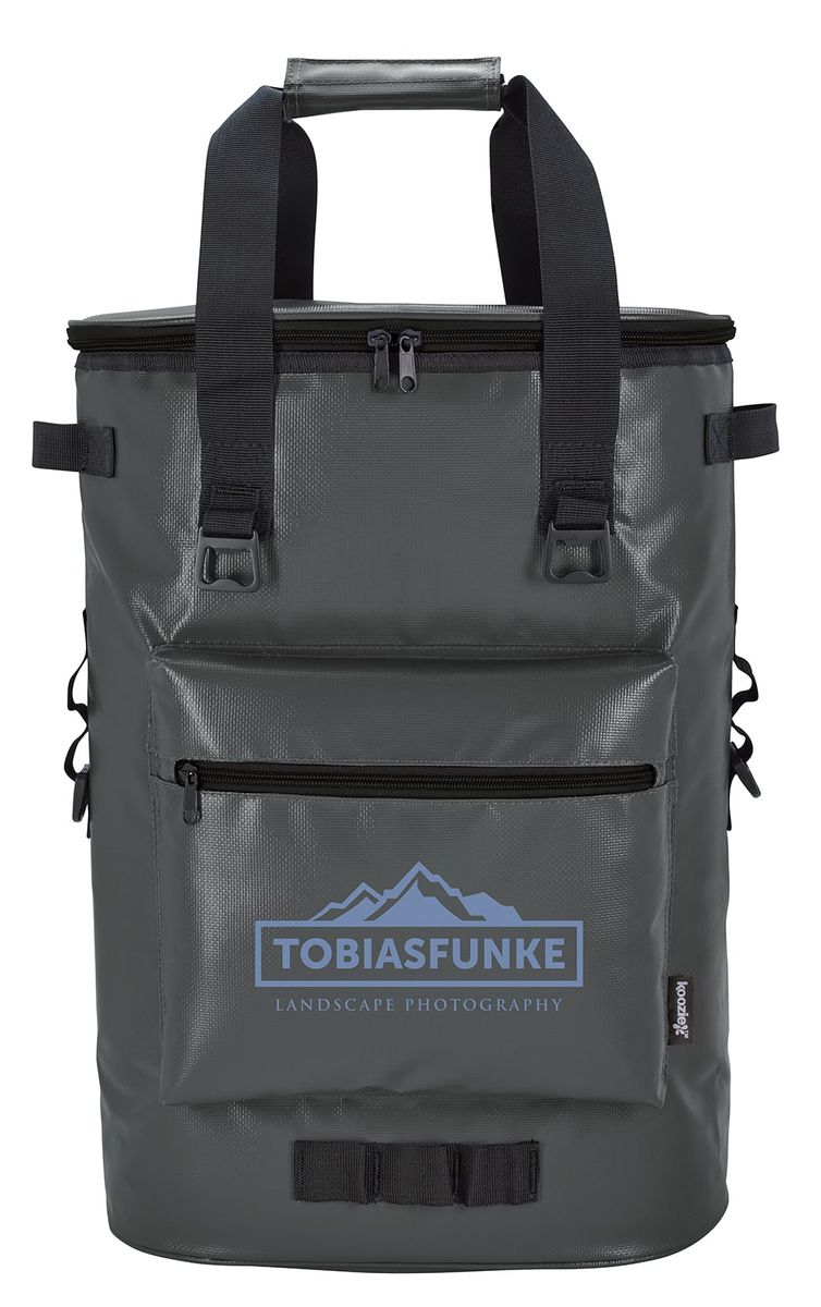 The premium Koozie® Olympus cooler Backpack, with a heat-sealed PEVA liner, is the perfect way to carry your refreshments for a day of fun. It has a 36-can capacity and is made of an easy-to-wipe-clean tarpaulin.